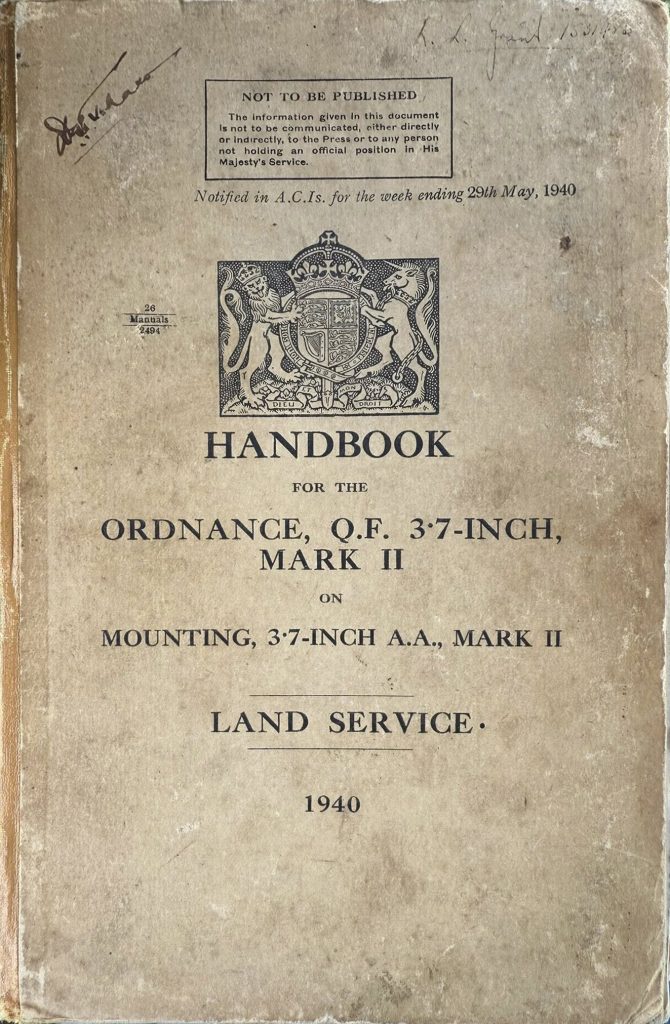 Our magnificent gun is a QF (Quick Fire) MK VI (6) Vickers 3.7 inch (HAA) or (ACK ACK) Heavy Anti Aircraft Gun. These were the standard anti-aircraft guns of the Second World War.